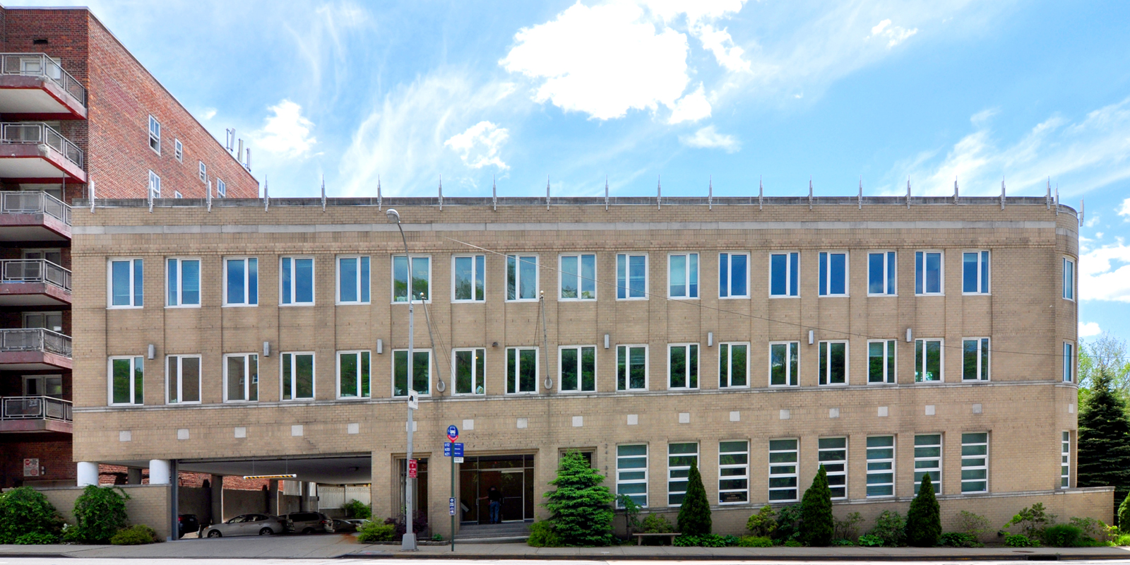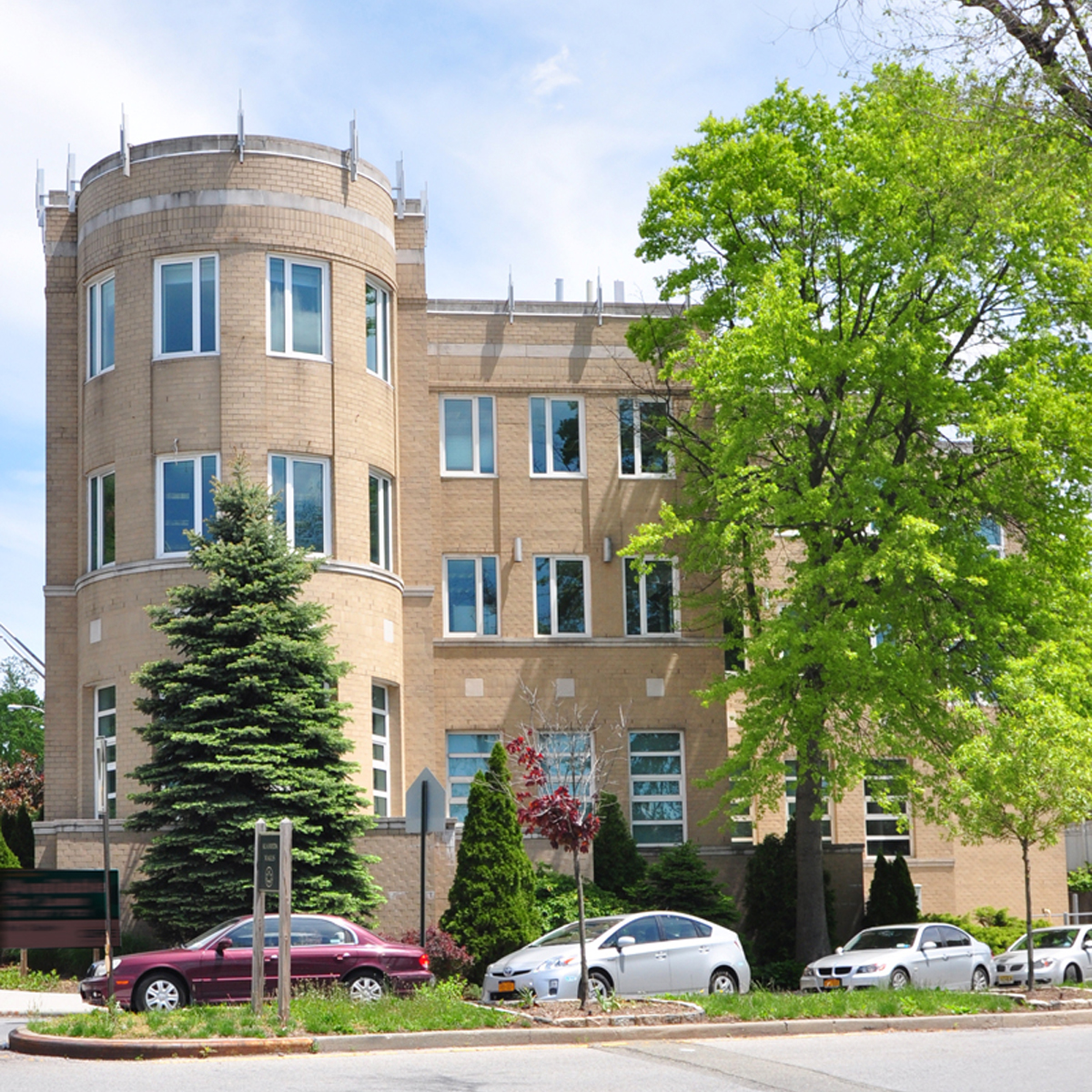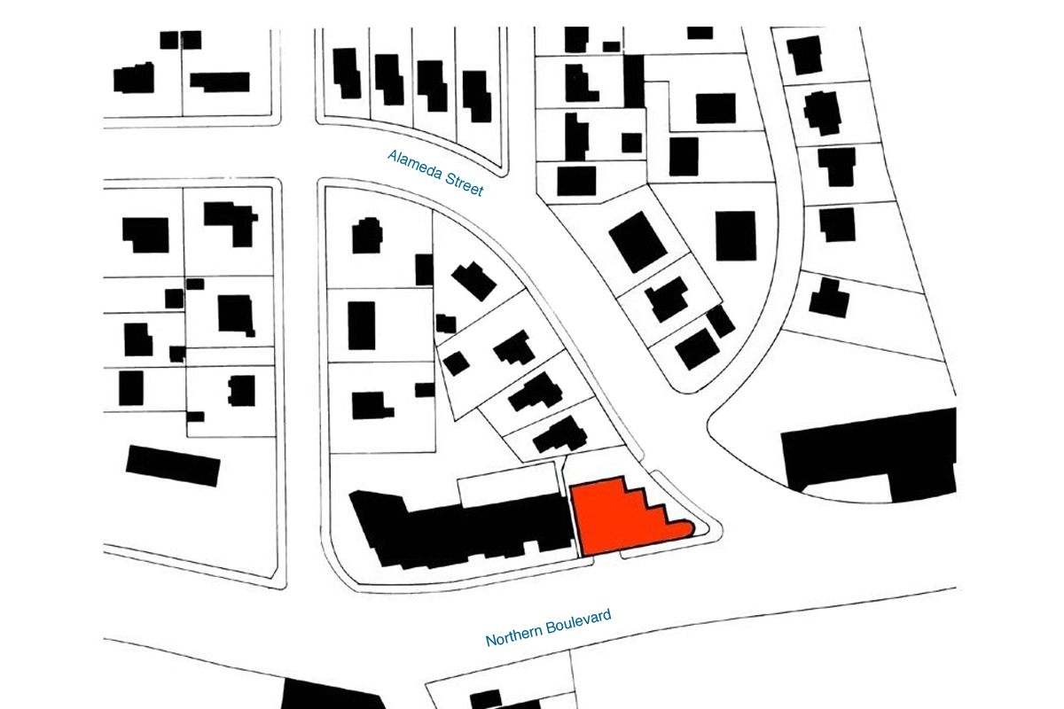 This three-story 24,000-square-foot office building has been designed to respond to the demands of its suburban environment. The main façade along Northern Boulevard addresses the scale of this major thoroughfare. The Alameda Street massing is broken down in order to relate to the scale of the houses along this street.