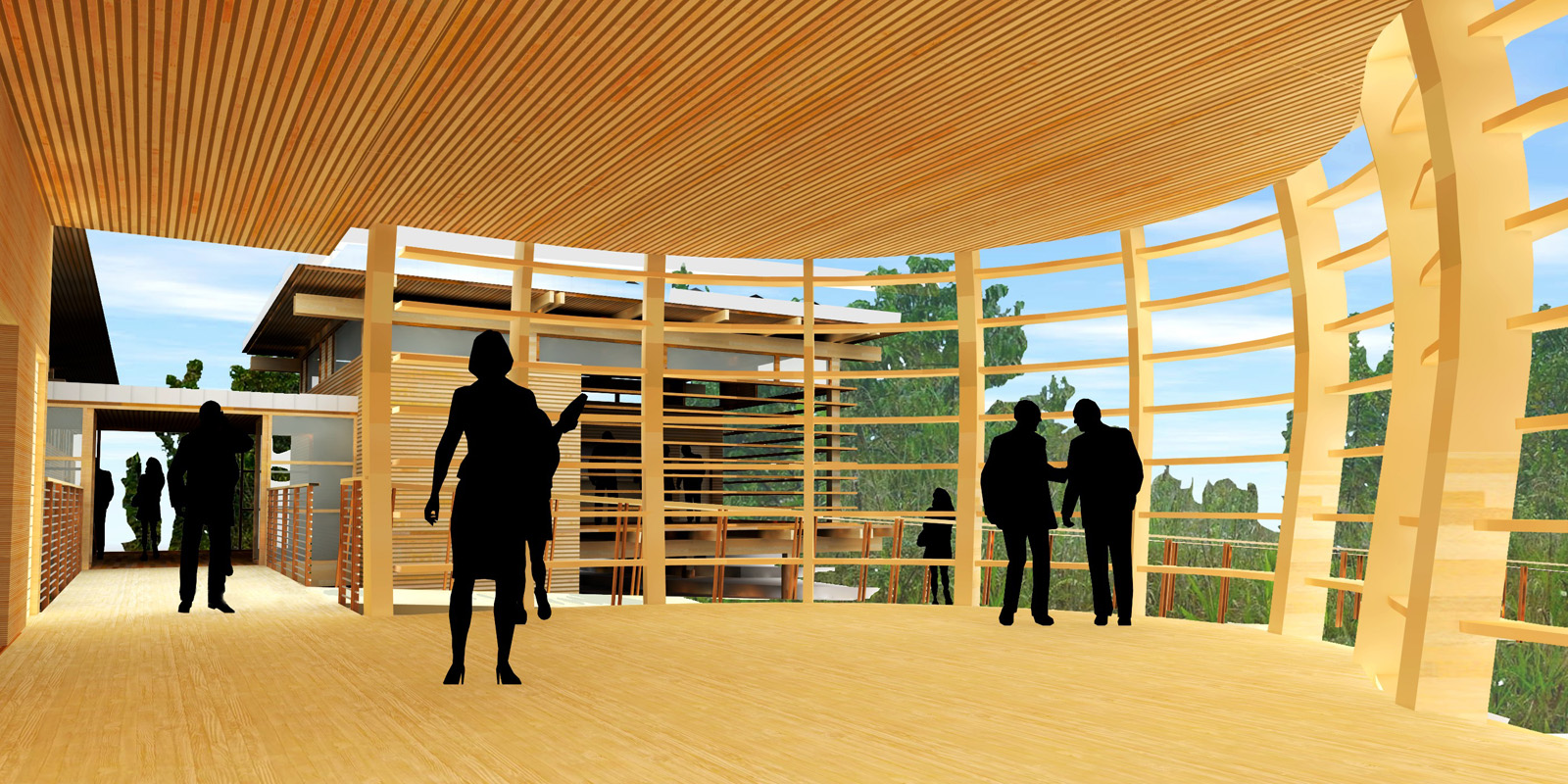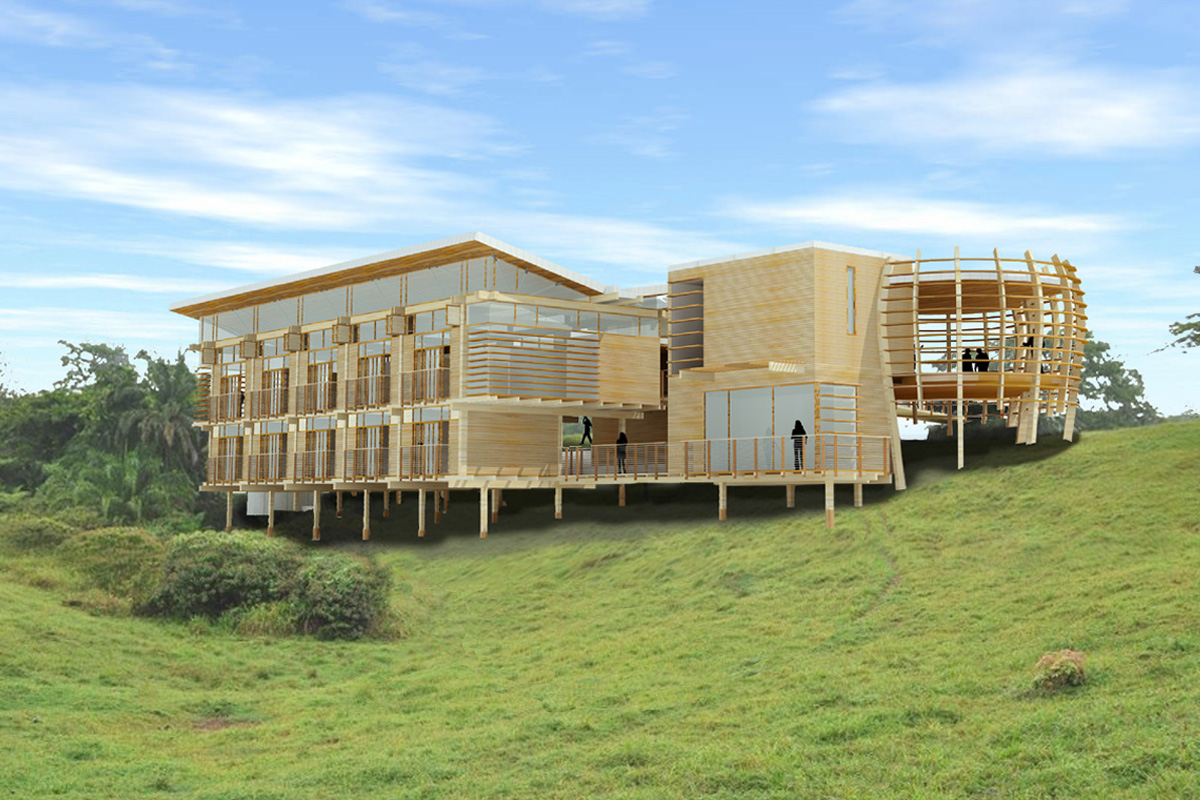The vision of the proposed design was to create a place where Fundecor, a wood harvesting concern, can thrive simultaneously with nature and the nearby community. With the intention to coexist with the landscape and natural ecosystems, our primary design intent was to “do no harm” to this unspoiled terrain.