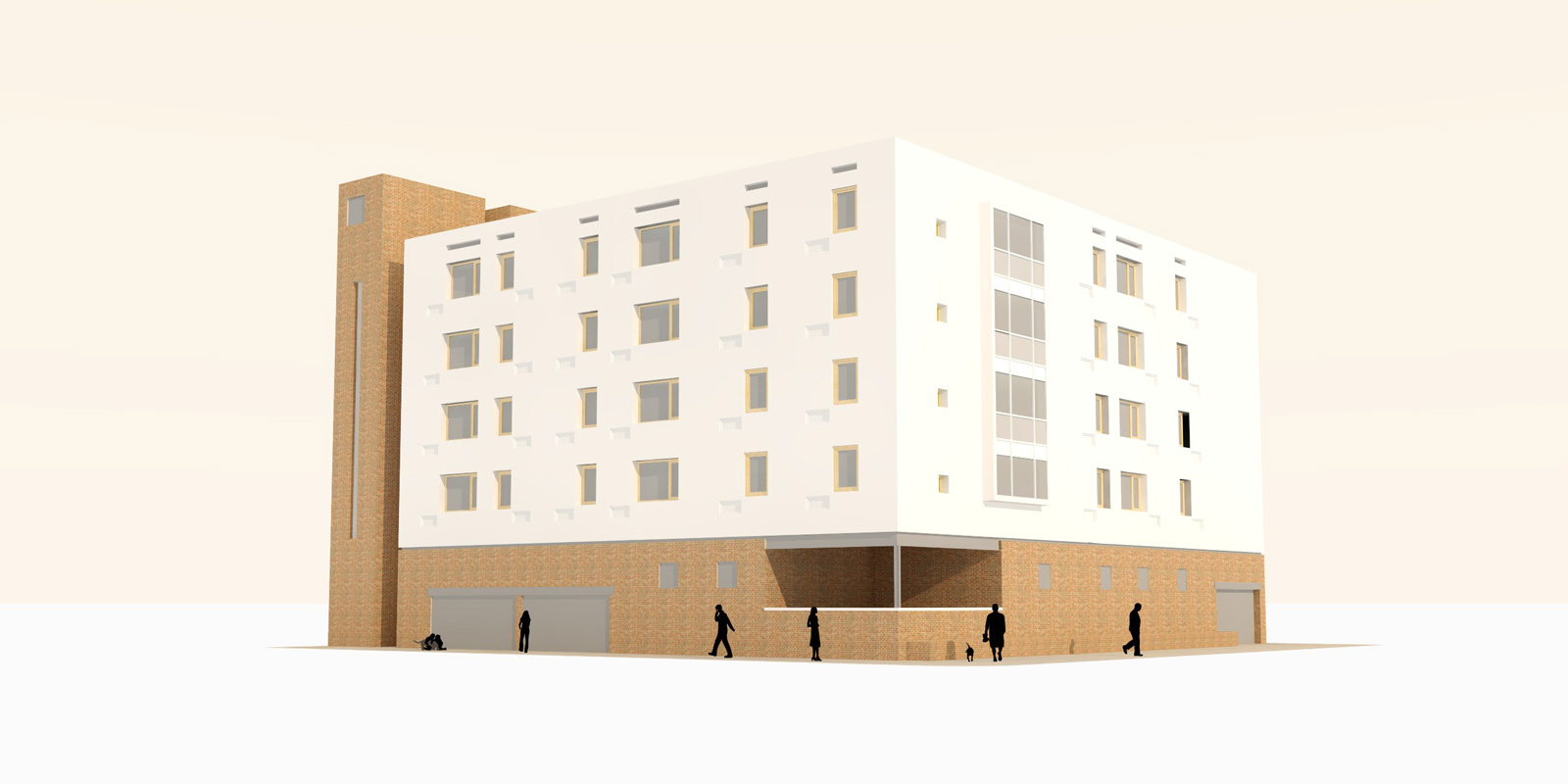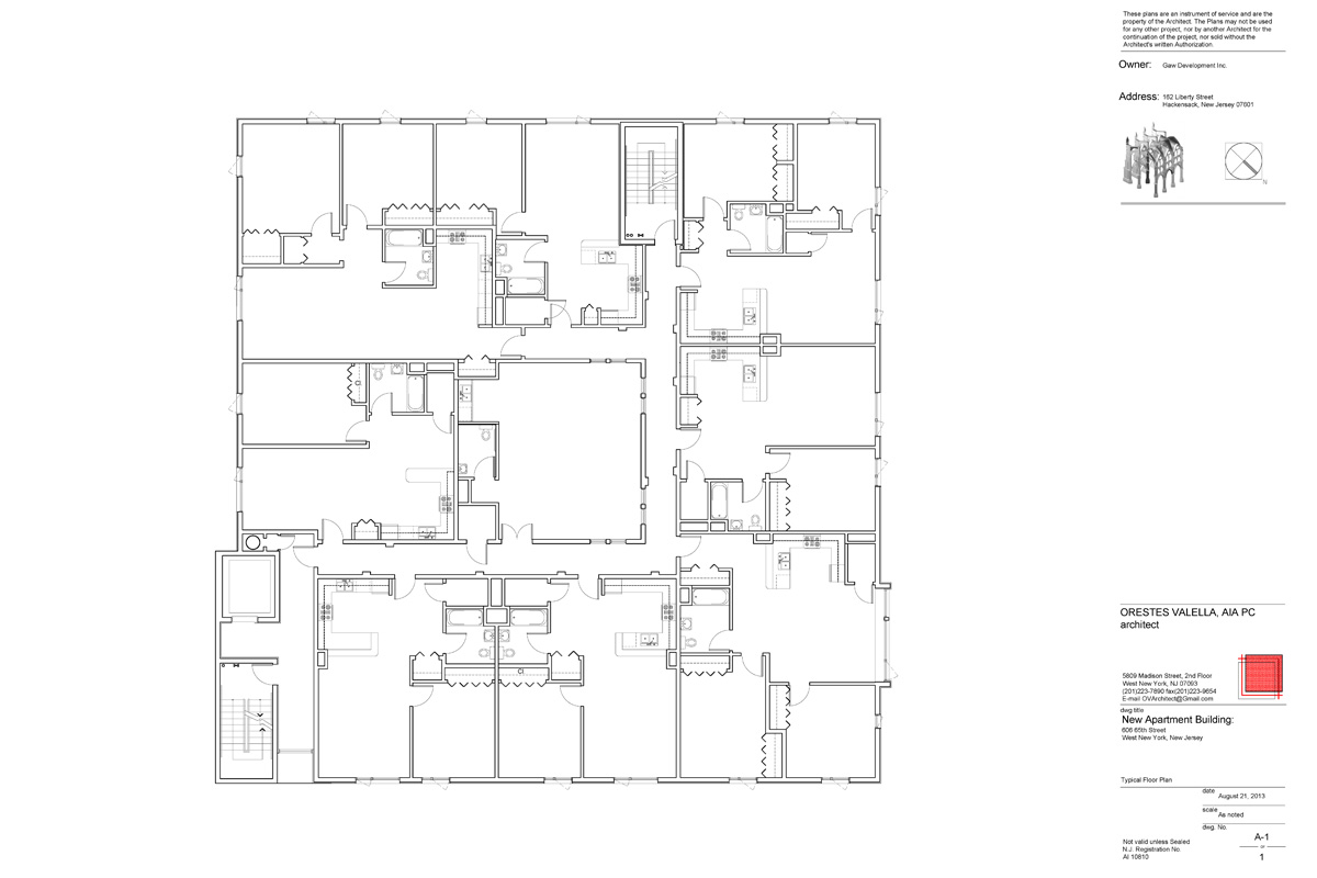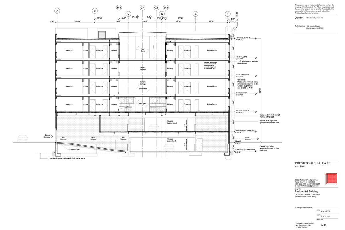 Gaw Place is a thirty-two unit apartment building built on a one hundred by one hundred urban corner property. The building consists of two parking levels, one half a level below grade, and four residential levels above, each containing eight dwelling units. The building contains an inner zone at each residential floor where various tenant amenities are provided: a community room on the second floor, dedicated storage cubicles on the third and fourth floors, and a gymnasium on the fifth floor.